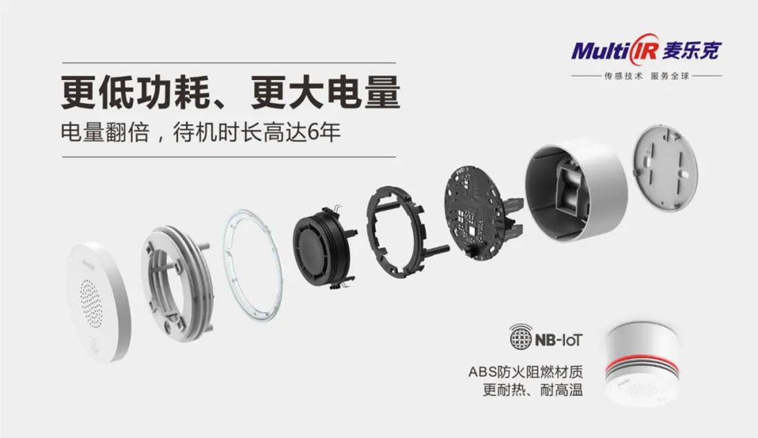 在产品品质方面,麦乐克NB-IoT无线烟雾传感器实现了低功耗、大电量的特性,在正常使用情况下,我们无需频繁更换电池,其待机时长高达6年;在产品材质上,外壳亦优选ABS防火阻燃材质,具有耐热、耐高温的特点,故在火灾隐患的恶劣环境下,让火灾感知和报警功能更可靠。