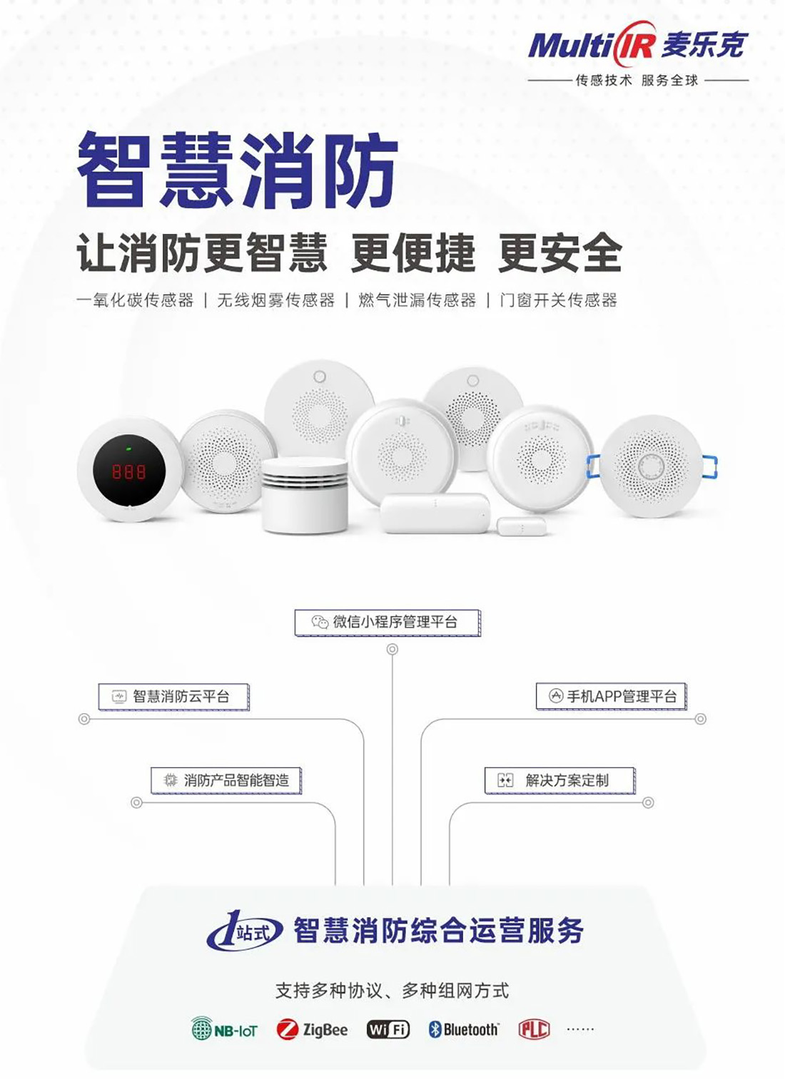 麦乐克NB-IoT智慧消防解决方案功能及特点突出,该方案具有低成本、低功耗、广覆盖、易安装、定位准、响应快、可感知等特点;NB-IoT解决方案的通讯技术采用了运营商网络,凡是手机能通讯的地方,该解决方案就能正常运行。故此,该套解决方案通讯十分稳定,无论是室内、楼梯间、地下室、户外、荒郊野岭、黄土高原等亦能正常工作。与此同时,麦乐克通过在硬件层加入数据采集设备,构建传感网络,将数据上传至智慧消防管理平台,打通从灾情感知到智能预警再到智能处理的整个智慧消防全流程,实现可视化“一张图”的智慧监管及掌控,通过“麦乐克智慧消防管理平台”即可做到指挥、调度、分析、决策全过程,为分秒必争的火灾救援赢得更多时间,最.大程度降低火灾损失。