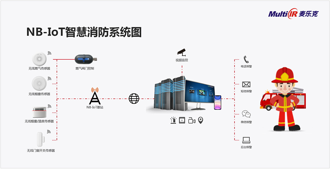 麦乐克NB-IoT智慧消防解决方案伴随着物联网、人工智能、大数据时代应运而生,有效解决了传统消防行业诸多痛点,具有低成本、低功耗、广覆盖、易安装、定位准、响应快、可感知等特点。