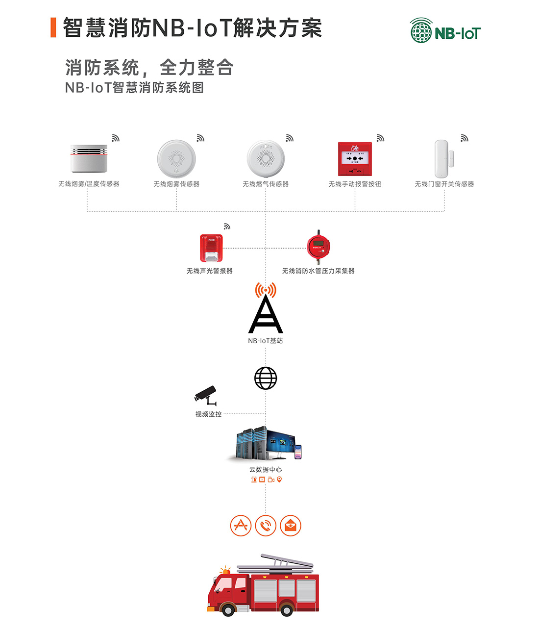 麦乐克智慧消防NB-IoT解决方案,融合了烟雾/温度探测、燃气泄漏探测、手动按钮报警、逃生通道告警、火灾声光警报、视频远程监控、消防水压表探测等产品,把“前端的探测、人为告警,中端的声光报警(人员疏散)、视频监控(精准定位)、后端的消防水压检测”进行了深度融合,全面打通每个环节,让消防更智慧、更便捷、更安全。