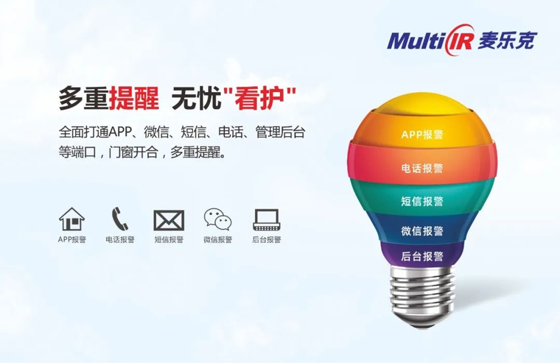 3、多重提醒,无忧“看护”。该系统全面打通管理后台、微信、电话、短信、APP等端口,门窗开合立刻多重告警;